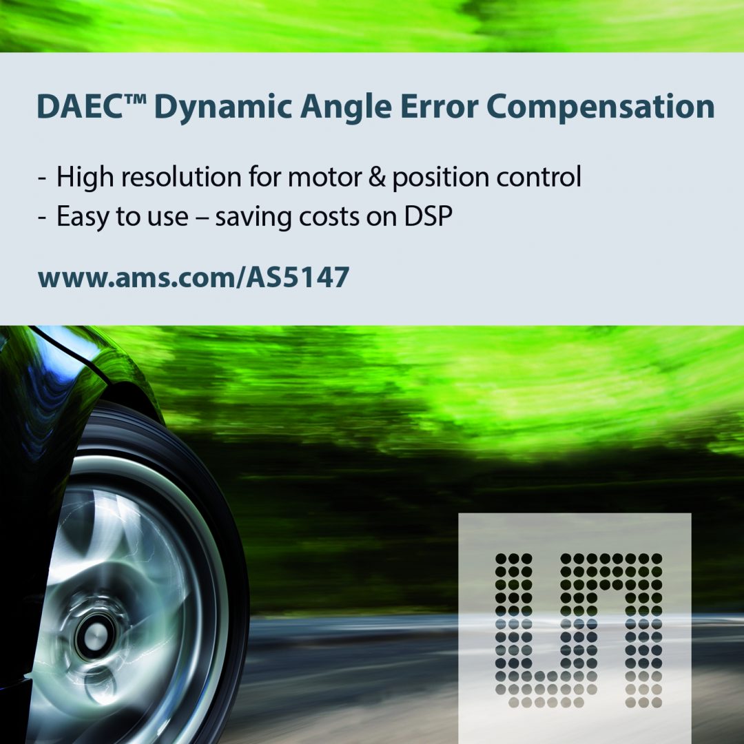 ams lance les AS5047D, AS5147 et AS5247, premiers membres d’une famille de capteurs de position à effet Hall embarquant une compensation de délai de propagation. Baptisée DAEC (Dynamic Angle Error Compensation), cette compensation repose sur une machine d’états interne qui s’adapte dynamiquement aux variations de vitesse de rotation et élimine quasiment l’erreur induite par le délai de propagation. La précision atteint alors +/-0,08° à 7000 tours/minute et 0,17° à 14500 tours/minute.