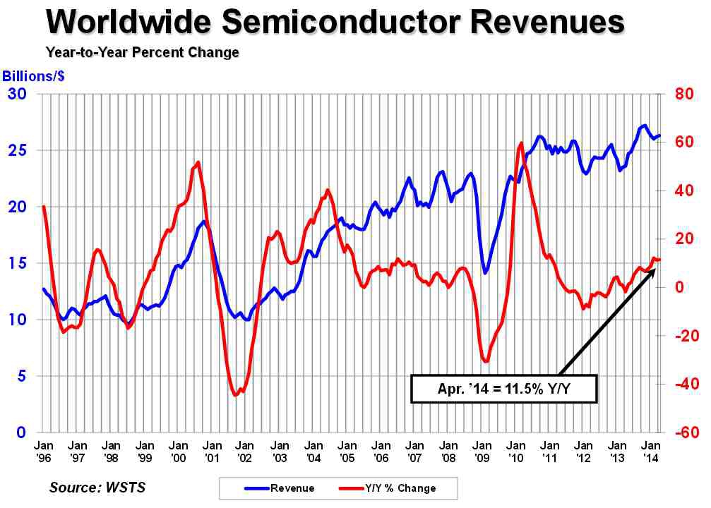 Le marché mondial des semi-conducteurs a encore consolidé sa progression par rapport aux premiers mois de 2013 qui était déjà une année record en terme de revenus.