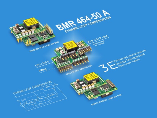 Le BMR464-50A est disponible en versions à broches traversantes (BMR4640008), à montage en surface (BMR4641008) et SIL (BMR4642008).