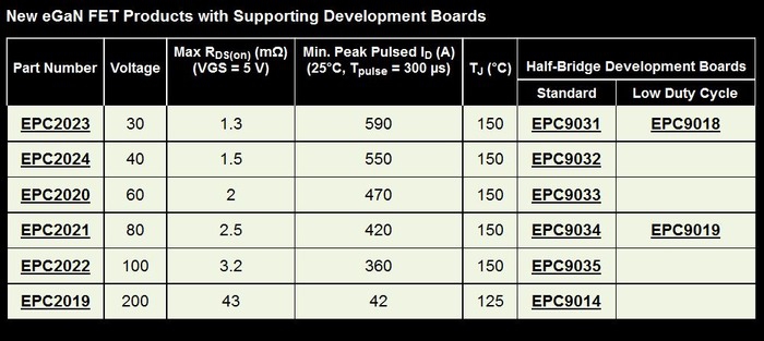 Au nombre de six, les Fet de puissance eGaN de nouvelle génération de l’américain sont proposés dans la gamme 30V à 200V.