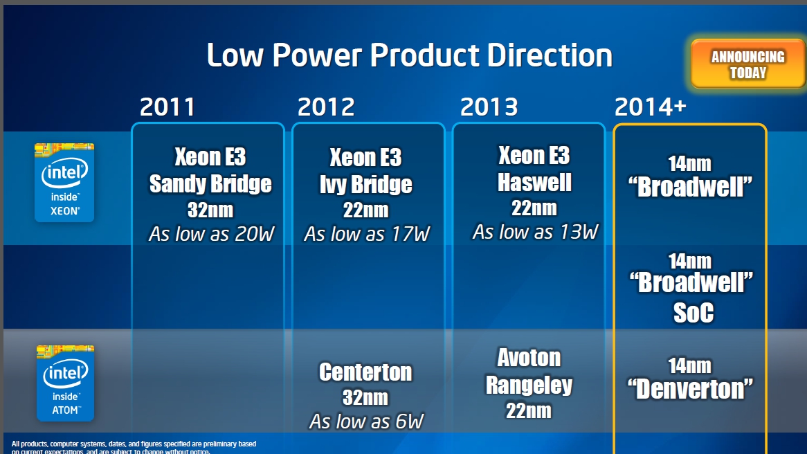 Intel a dévoilé quelques détails relatifs à la microarchitecture Broadwell des processeurs Core M, les premiers à bénéficier de sa technologie 14nm, la deuxième génération exploitant les transistors tridimensionnels FinFET maison. Ces processeurs pour applications nomades devraient commencer à être disponibles d’ici la fin de l’année, et, surtout, au premier semestre 2015.