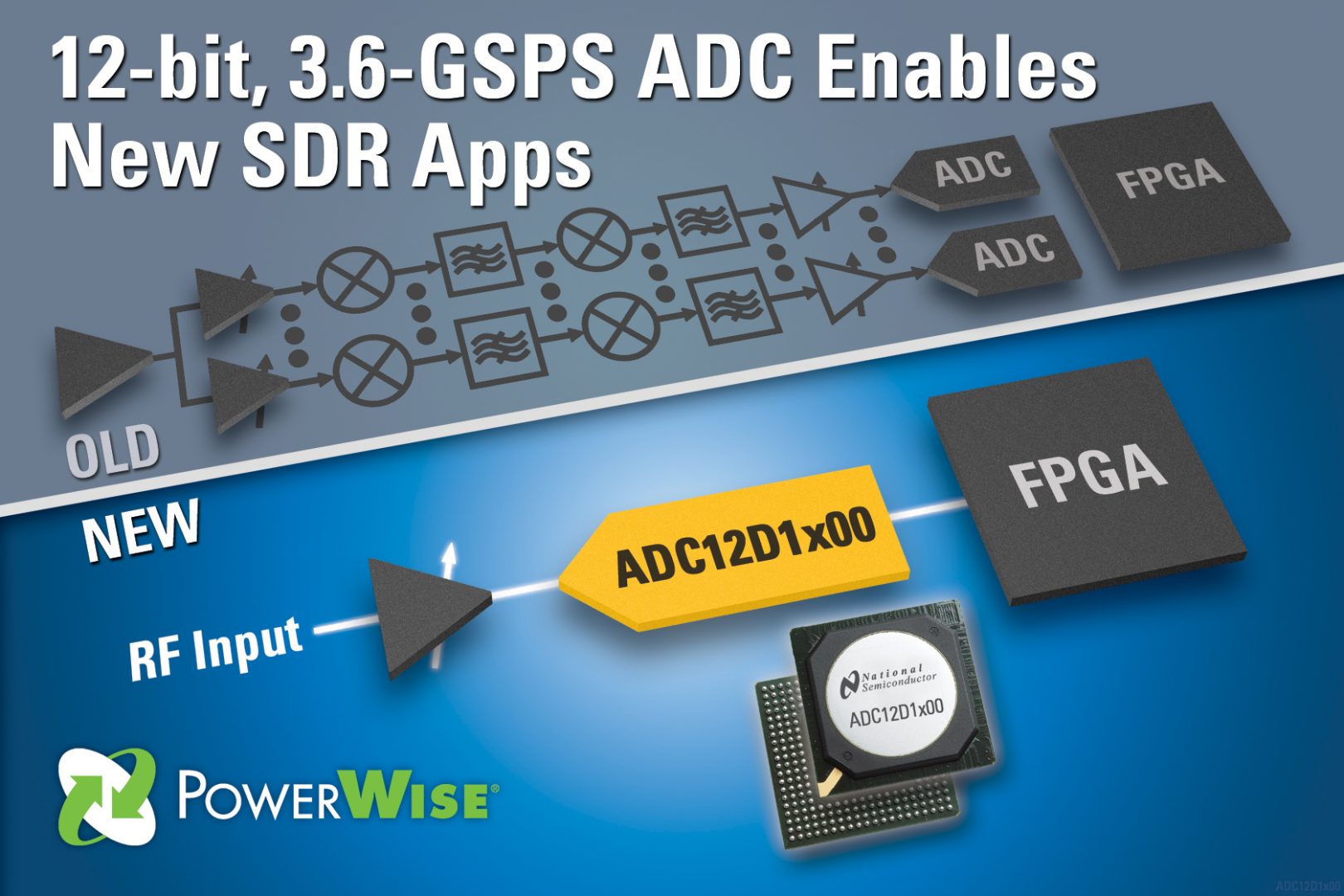 National Semiconductor booste la vitesse de ses convertisseurs analogique-numérique 12 bits. National Semiconductor présente l’ADC12D1800, un convertisseur analogique-numérique 12 bits à deux canaux offrant une fréquence d’échantillonnage inédite dans l’industrie de 3,6 Géch/s. Avec un rapport signal sur bruit de 57,8 dB et une marge dynamique de 67 dB, il vise les radars, les équipements de communication ou encore les boîtiers-décodeurs multicanaux. L’ADC12D1800 consomme 2,05 W par canal. Des versions cadencées à 3,2 GHz et 2 GHz sont également disponibles.