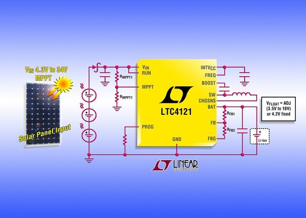Capable de fournir 400mA, le LTC4121 de Linear Technology affiche une large plage de tension d’entrée (4,4 à 40V).