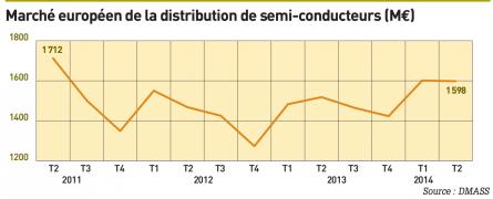 > au 2 e trimestre 2014, les ventes de semi-conducteurs industriels (hors composants pour Pc) ont progressé de 5,3% par rapport au 2 e trimestre 2013, à 1,6 milliard d’euros. le 1 er semestre s’est achevé avec une croissance de 6,6% sur un an.