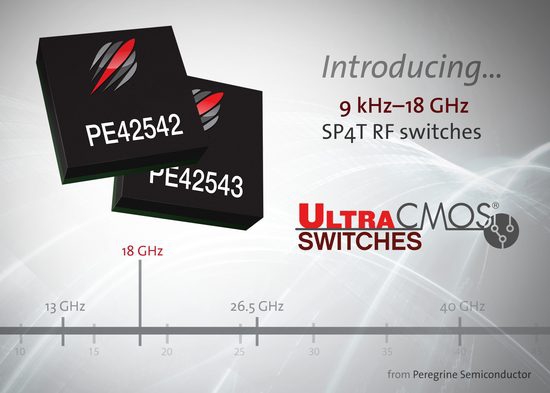Deux commutateurs RF en technologie UltraCmos complètent la gamme de Peregrine Semiconductor. Les PE42542 et PE42543 sont des modèles unipolaires de type SP4T (single-pole four throw) fonctionnant de 9kHz à 18GHz. Les nouveaux venus se contentent par ailleurs de 120µA, soit beaucoup moins que les commutateurs en GaAs.