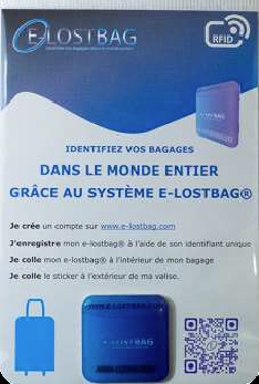 Il suffit d’identifier ses bagages avec cette étiquette sur la plateforme web e-lostbag avant de partir et ce, quel que soit le moyen de transport utilisé. Tout bagage identifié avec e-lostbag sera désormais identifiable, traçable et récupérable.