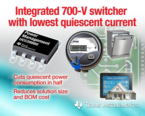 Le module de gestion d’alimentation à faible consommation UCC28880 embarque notamment un Mosfet de 700V.