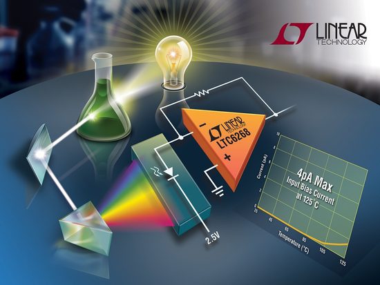 Avec les LTC6268 (simple) et LTC6269 (double), Linear Technology introduit des amplificateurs opérationnels rapides à étage d’entrée Fet, caractérisés par un courant de polarisation ultra-bas. Celui-ci est en effet de ±3fA (valeur typique) à température ambiante et de ±4pA (valeur maximale) à +125°C.
