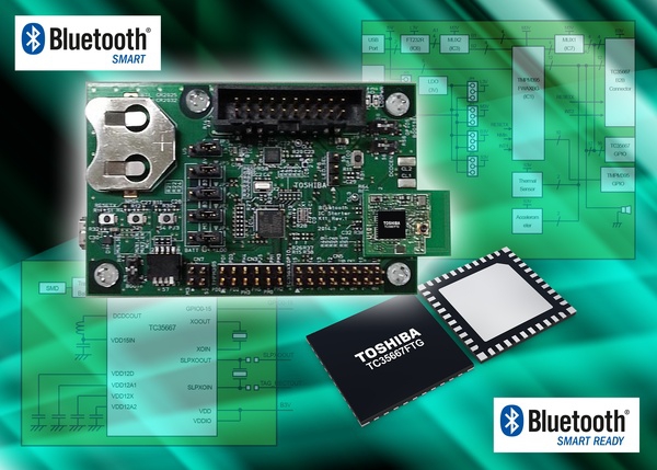 Toshiba Electronics Europe met à disposition un kit de démarrage visant à accélérer le développement de sous-systèmes Bluetooth Low Energy (BLE). Ce kit exploite un circuit BLE (le TC35667FTG) et un microcontrôleur (le TMPM395FWAXBG) de la société, implantés sur des circuits imprimés distincts, ainsi que des capteurs et les outils logiciels requis.