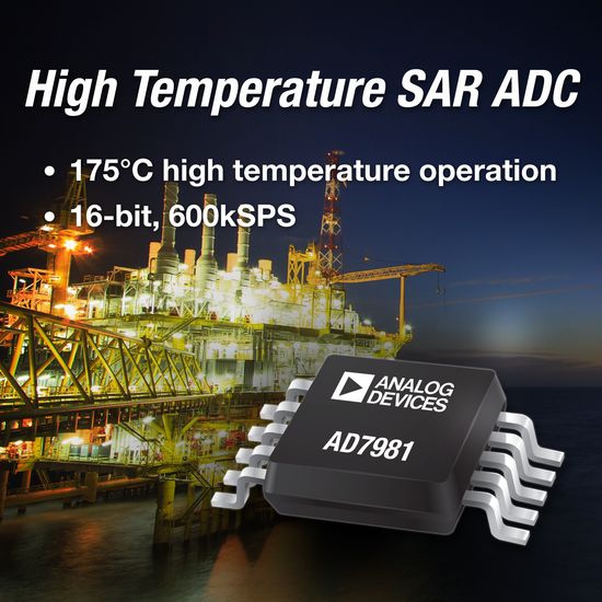 Fonctionnant jusqu’à 600kéch./s, l’AD7981 d’Analog Devices est spécifié à une température maximale de +175°C.