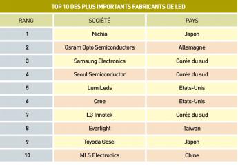 Pour la première fois, une société chinoise a intégré l’élite mondiale des fabricants de Led. Il s’agit de MLS Electronics qui se place au dixième rang du classement 2013 dévoilé par IHS Technology. L’entreprise de l’Empire du milieu ne devrait toutefois pas concurrencer les habituels ténors du secteur. Du moins à court terme…