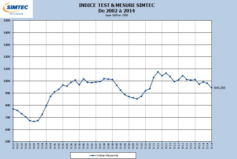 L’indice du Simtec (Syndicat de l’instrumentation de mesure, du test et de la conversion d’énergie dans le domaine de l’électronique) indique que la tendance baissière du marché français du test et de la mesure électroniques constatée au 2è trimestre 2014, s’est confirmée et même accélérée au 3è trimestre.