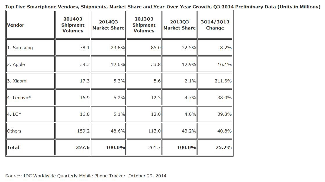 Ce succès s’explique notamment par le récent lancement du smartphone Mi4, qui ressemble à l’iPhone et qui se positionne ainsi comme une alternative sur le haut de gamme jusqu’à présent monopolisé par ces deux ténors, commente IDC.