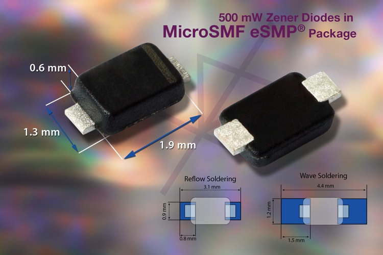 Vishay Intertechnology annonce la famille PLZ de diodes Zener de 500mW affichant une faible empreinte et un bas profil. Ces composants adoptent en effet un boîtier MicroSMF (SOD-323) dont les dimensions sont de 1,9×1,3mm (2,5×1,3mm avec les broches), pour une hauteur de 0,6mm seulement.