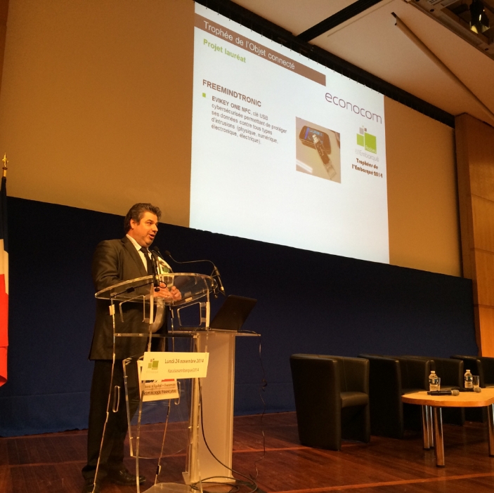 – Trophée de l’objet connecté. Il récompense le projet d’objet connecté ayant apporté le service le plus innovant à destination du grand public ou des professionnels. Le vainqueur est Freemindtronic avec son produit Evikey One NFC, clé USB cybersécurisée permettant de protéger ses données contre tous types d’intrusions (physique, numérique, électronique, électrique)