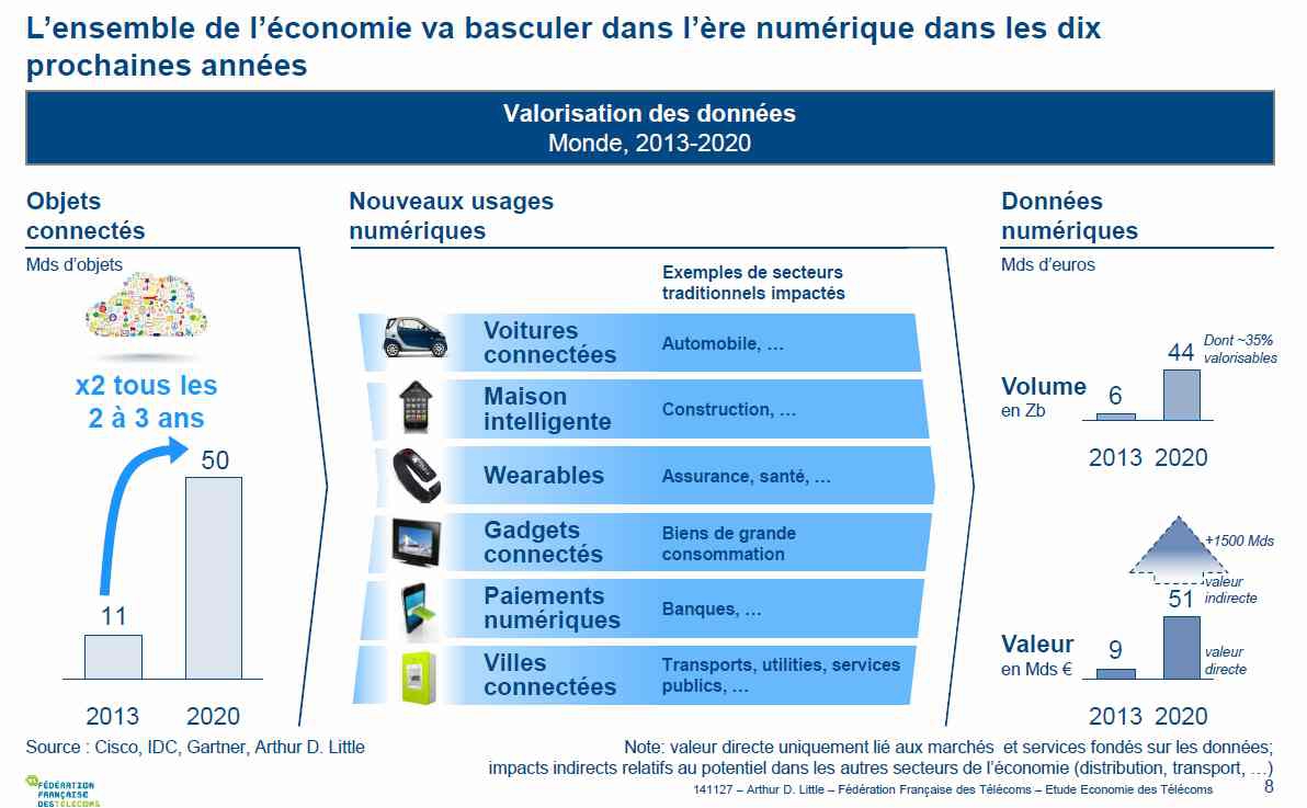 Avec la numérisation de l’économie, la valeur se déplace vers les données numériques qui transitent de manière massive et exponentielle sur les réseaux télécoms, via les terminaux et les objets connectés.