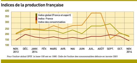 > L’activité accuse une baisse sensible au mois de novembre avec l’indice le plus faible de 2014, quasiment au même niveau que novembre 2013. Quasiment tous les commentaires des adhérents sont négatifs, et pourtant, l’indice de confiance reste robuste bien au-dessus de 5. Il est vrai que le reste de l’année compense cette médiocre performance,