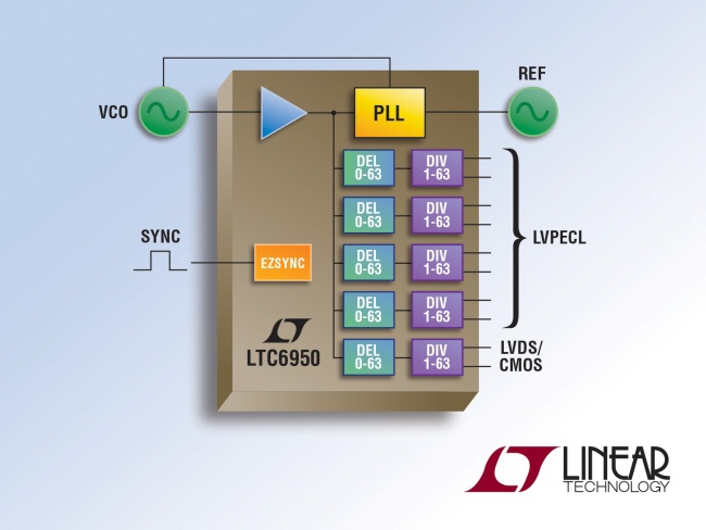 Œuvre de Linear Technology, le LTC6950 intègre un cœur de synthétiseur de fréquence à PLL, complété par une circuiterie de distribution des signaux d’horloge pour convertisseurs et systèmes d’acquisition de données.