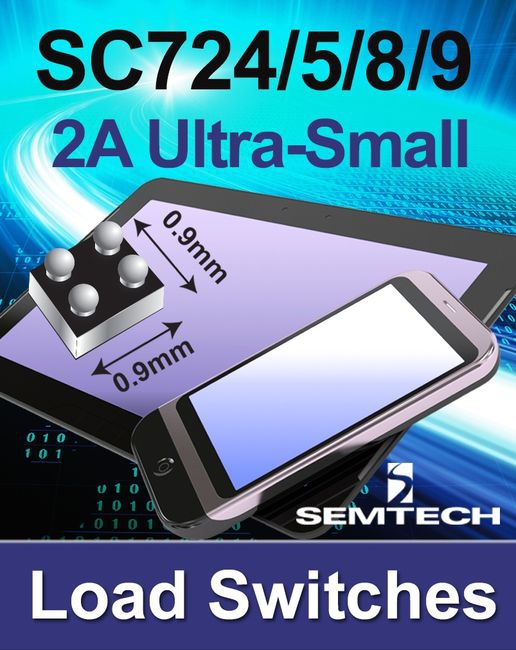 Encapsulés dans des boîtiers de 0,76mm de côté, les commutateurs de charge de la série SC72x sont crédités d’une résistance à l’état passant de 36mOhms seulement.