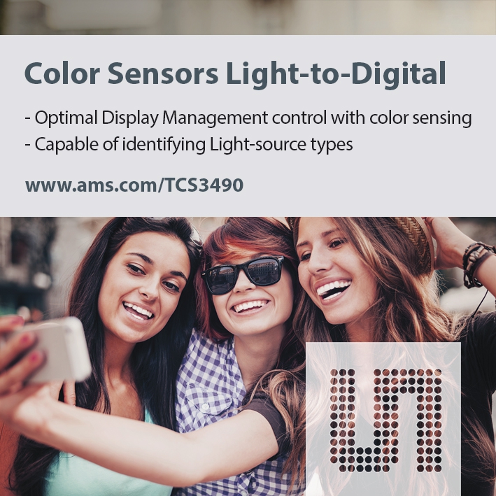 ams lance la production en volume du TCS3490, un capteur de couleurs destiné aux appareils nomades (smartphones, tablettes, appareils photo numérique, etc.).
