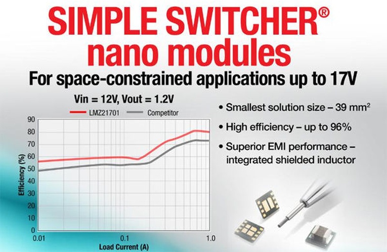 Texas Instruments complète sa populaire famille de modules d’alimentation « Simple Switcher » avec quatre références, à destination des applications pour lesquelles l’encombrement sur le circuit imprimé est un paramètre critique.