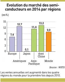 L e marché des semi-conducteurs a affiché des ventes records en 2014, totalisant 335,8 milliards de dollars en