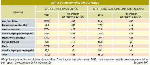 L enombre de smartphones vendus a atteint 1,2 milliard d’unités en 2014, soit une hausse de 23% en un an, avec une prédilection
