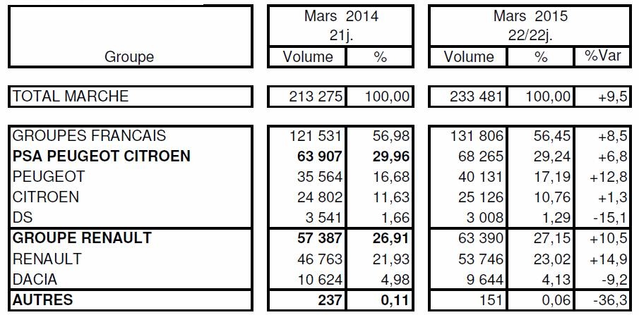 Le CCFA table désormais sur une croissance de 2% à 3% des immatriculations de voitures neuves sur l’ensemble de l’année, alors qu’il attendait jusqu’ici un marché automobile français “globalement stable” en 2015. “La France est sur une tendance de rattrapage en pourcentage de l’évolution des ventes européennes”, a déclaré Patrick Blain, président du CCFA, au cours d’une conférence de presse.