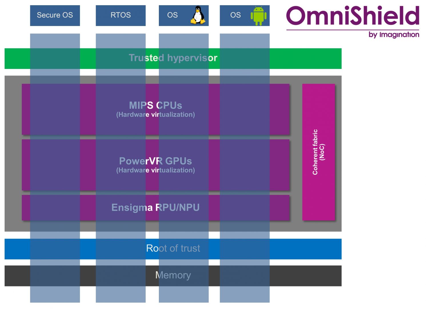 Imagination Technologies lance OmniShield, une approche globale permettant de renforcer la sécurité et la fiabilité des systèmes basés sur ses processeurs. OmniShield créé plusieurs domaines de protection, avec plusieurs applications et/ou systèmes d’exploitation, sécurisés ou non, cohabitant sur une même puce. OmniShield supporte toute la gamme de coeurs d’Imagination (processeurs Mips Warrior, Ensigma, PowerVR, etc.) grâce à un ensemble de fonctions sécurisées : cryptographie, accélération de clé publique, génération de nombres aléatoires, entrées/sorties protégées, Rom sécurisée… Des conceptions de référence seront disponibles dans le courant de l’année.