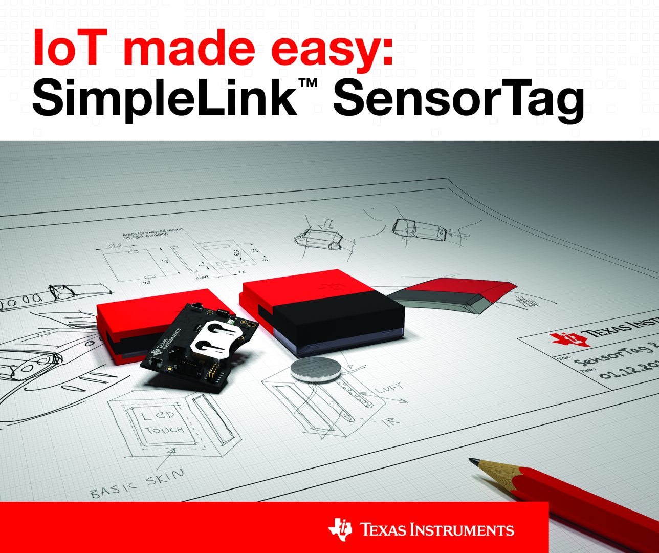 Texas Instruments lance un kit de développement baptisé SimpleLink SensorTag et destiné à faciliter l’intégration de données issues de capteurs dans le cloud par liaison sans fil. Il comprend dix capteurs basse consommation, plusieurs options de connectivité sans fil (Bluetooth LE, 6LoWPAN, ZigBee…) autour du microcontrôleur CC2650, les piles de protocoles nécessaires, etc. Des modèles de référence complets incluant les fichiers d’impression 3D de boîtiers permettent d’utiliser cette plate-forme SensorTag comme base pour une conception personnalisée. Des modules additionnels dits DevPack ajoutent qui un microcontrôleur de débogage, qui un afficheur 1,35 pouce, qui des Led multicolores…