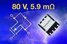 Ce transistor canal N est en réalité le premier modèle 80 V dont la résistance à l’état passant est spécifiée pour une tension grille-source de 4,5 V seulement.