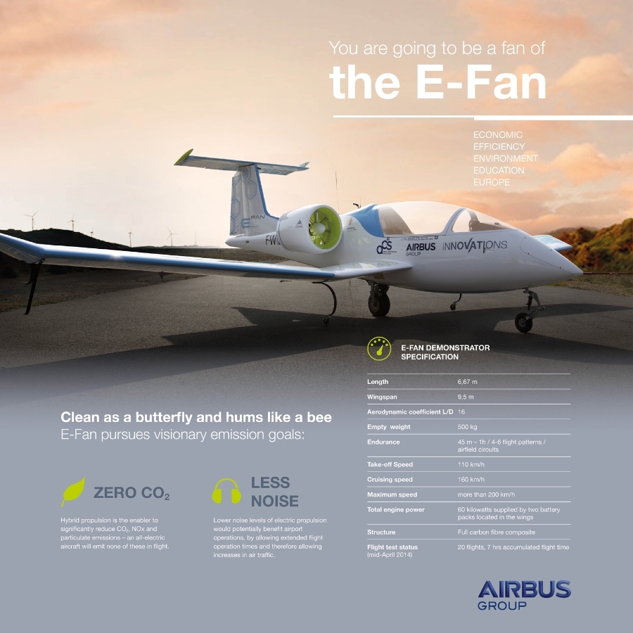 106 ans presque jour pour jour après Louis Blériot (c’était le 25 juillet 1909), le Français Didier Esteyne est devenu aujourd’hui le premier pilote à traverser la Manche avec un avion à propulsion 100% électrique, l’E-Fan d’Airbus. Ce biplace de 600 kg, long d’un peu moins de 7 mètres et d’une envergure de près de 10 mètres, a été développé en 2011 et dévoilé pour la première au salon du Bourget 2013. Son premier vol officiel a eu lieu au printemps 2014.