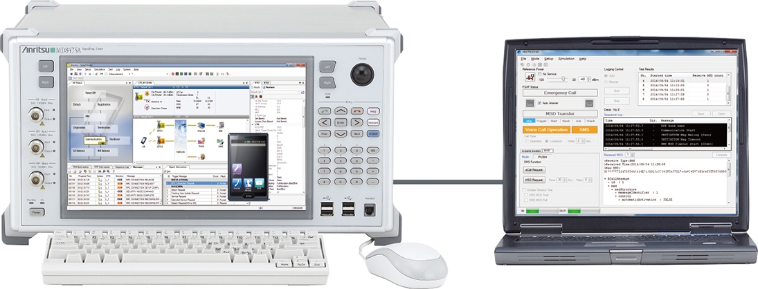 Le simulateur de station de base est ainsi le premier système de test et d’évaluation de type « hardware in the loop » pour les modules de communication destinés à être embarqués à bord d’un véhicule et dotés des fonctions eCall et/ou ERA/GLONASS, en laboratoire et après l’installation. Pour cela, le testeur MD8475A intègre directement un logiciel simulant les centres d’appel d’urgence Public Safety Answering Points (PSAP), ce qui simplifie significativement le développement et l’évaluation d’une application.