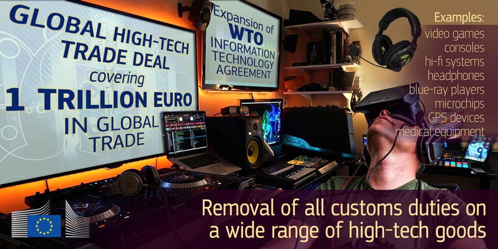 Les 54 membres de l’OMC (Organisation mondiale du commerce) impliqués dans l’extension de l’accord sur les technologies de l’information (“Information Technology Agreement” ou ITA) ont réalisé une avancée majeure le 24 juillet dernier. Ils se sont entendus sur l’élimination des droits de douane sur 201 produits high-tech, incluant les dernières générations de semi-conducteurs tels que les circuits intégrés multipuces (qui n’étaient pas inclus dans le précédent accord ITA), les appareils médicaux tels que les systèmes d’imagerie à résonnance magnétique (plus communément appelés scanners), les systèmes de navigation par GPS, les camescopes, les écrans tactiles, les satellites de télécommunications, les équipements de production de circuits imprimés et beaucoup d’autres produits ou systèmes électroniques incorporant des semi-conducteurs.