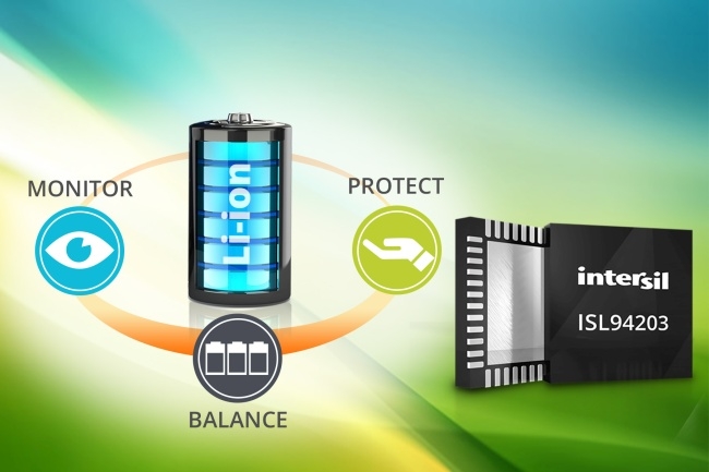 Susceptible de fonctionner en toute autonomie, le circuit ISL94203 assure les fonctions de surveillance, de protection et d’équilibrage des éléments Li-ion d’une batterie.