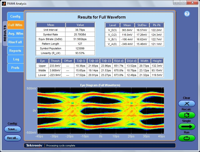 Ces nouveaux outils fonctionnent sur les oscilloscopes numériques en temps réel DPO70000SX – qui accueille d’ailleurs le modèle supplémentaire DPO75002SX (jusqu’à 1 voie, 50 GHz et 200 Géch/s) – et en temps équivalent DSA8300, qui se distinguent tous les deux par un très faible niveau de bruit et une très haute sensibilité. Parmi les fonctionnalités, on peut citer la capacité d’analyser les formes d’ondes complètes ou les formes d’onde corrélées, les paramétrages de niveau de référence pour l’analyse de réussite/échec des seuils de multiniveaux, les temps de montée et de descente numériques pour chaque niveau LSB et MSB, ainsi que l’intégration d’une récupération d’horloge utilisant des modèles PLL spécifiques au PAM fournis par Tektronix.