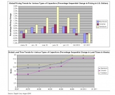 Du côté des condensateurs céramique, là encore, il faut compter 18 semaines pour espérer voir sa commande arriver. Toutefois, les fabricants ont fait des efforts pour accroître la capacité de leurs outils de production ces derniers temps. Efforts qui, combinés au ralentissement de la demande en fin d’année, devrait permettre d’améliorer la situation au dernier trimestre 2010 avec une stabilisation, voire une légère diminution des prix.