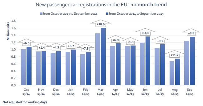 La hausse des ventes de voitures en Europe est restée soutenue en septembre et le scandale Volkswagen ne semble pas avoir affecté les performances commerciales des marques du groupe allemand, selon l’Association des constructeurs européens d’automobiles (ACEA).