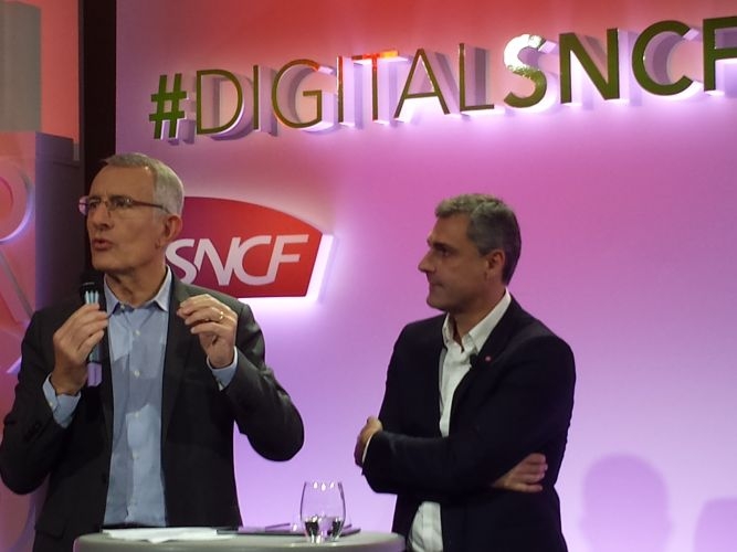 Guillaume Pepy, président du directoire de SNCF et Yves Tyrode, directeur du digital avaient présenté, le 10 février 2015, le programme baptisé « digital sncf » avec l’objectif d’accélérer la transformation de l’entreprise vers le numérique.