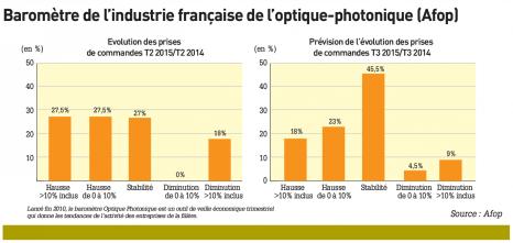 > Au 2 e trimestre 2015, 55% des entreprises du secteur de l’optique/photonique interrogées ont fait état de prises de commandes en hausse par rapport au 2 e trimestre 2014, confirmant ainsi la bonne tendance de 2015. En effet, sur la période allant de janvier à juin, 76% des entreprises sondées estiment que leurs prises