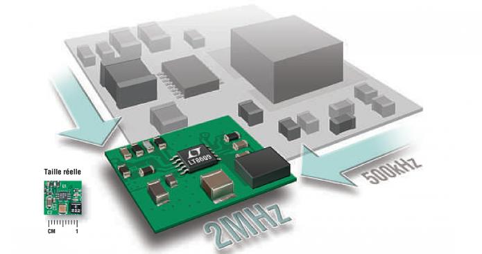 Le LT ® 8609 combine un haut rendement et des fréquences de commutation élevées pour obtenir une solution 2A (3A crête) en mode abaisseur, synchrone, très compacte. Il présente un rendement de 93% en commutant à 2MHz, avec une conversion en mode abaisseur de 12V en entrée à 5V