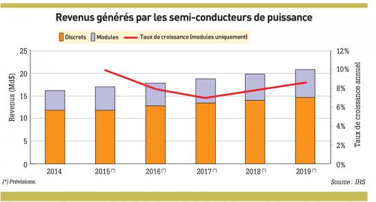 Jusqu’en 2019, les modules de puissance afficheront un taux de croissance deux fois supérieur à celui des composants discrets, estime IHS.