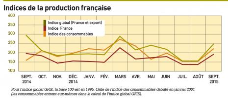 > Par rapport à juillet-août, l’indice de la production pour la France, communiqué par le GFIE, a progressé de 40,24% en septembre, et l’indice global (incluant l’export) a fait un bond de 58,93%, le tout corroboré par un indice de confiance qui remonte à un très bon niveau: 5,80. C’est donc à une nette remontée