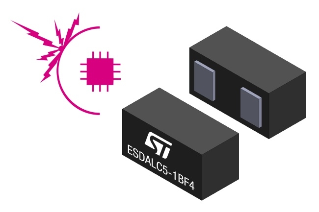 Affichant des dimensions de 0,3×0,8mm, les diodes ESDALC5-1BF4 de STMicroelectronics supportent les surtensions à hauteur de 16kV.