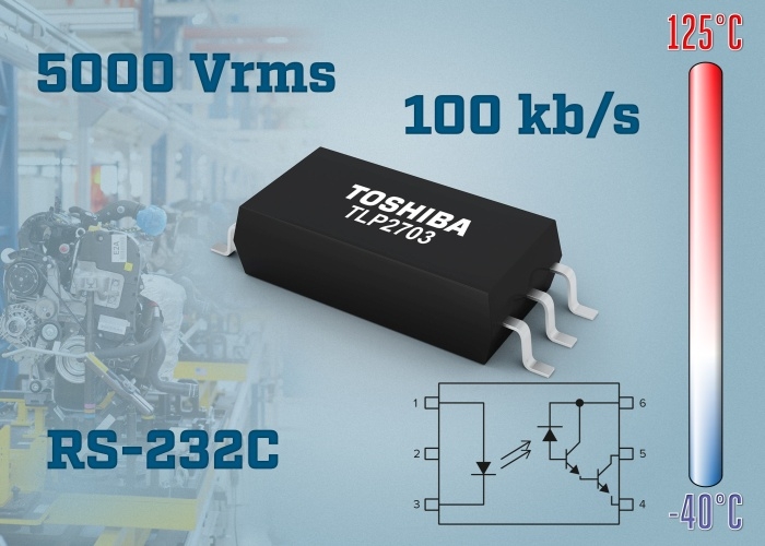 Le TLP2703 est logé dans un boîtier SO6L dont l’épaisseur est de 2,3mm seulement. Il offre une tension d’isolement de 5kVeff, et fonctionne jusqu’à +125°C.
