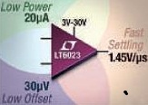 Ce double ampli op procure un décalage du zéro de tension inférieur à 30µV et une stabilisation en 60µs à 0,01% près.