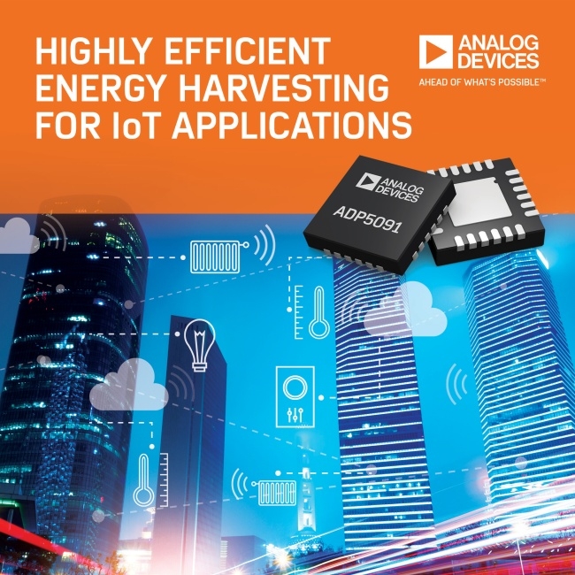 Les ADP5091/2 d’Analog Devices convertissent l’énergie dispensée par des cellules photovoltaïques ou des générateurs thermoélectriques, afin de réaliser des solutions autonomes collectant l’énergie de leur environnement.