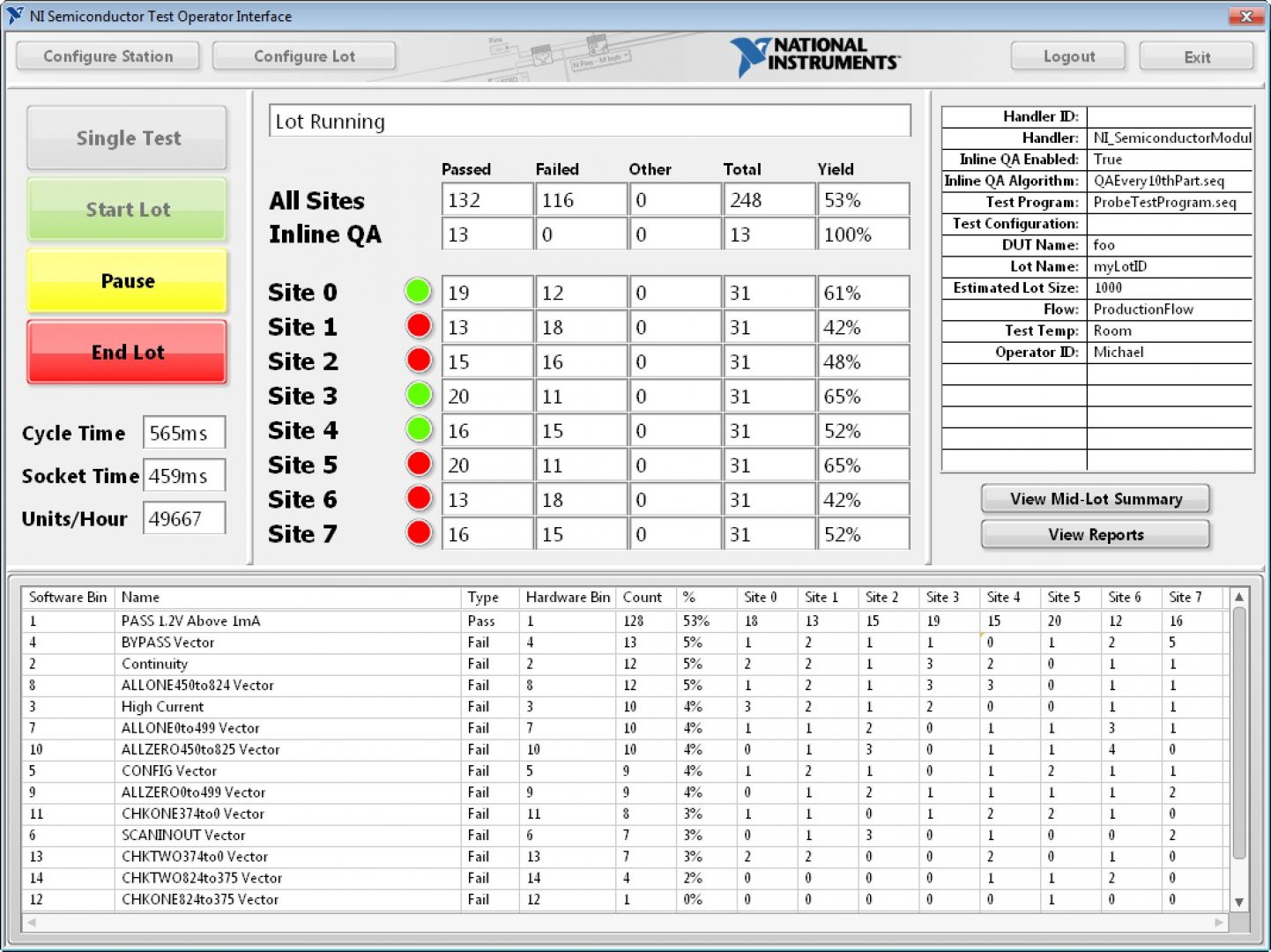 Parmi les améliorations, citons des fonctionnalités supplémentaires dédiées aux équipements multisites et à la création de rapports, ainsi que des interfaces prober/manipulateur pour obtenir des systèmes de test plus « intelligents ». Par exemple, une programmation dynamique multisite pour réutiliser du code sur plusieurs sites de test selon les besoins, la présence d’un éditeur de mappage de broches incluant la technologie PXI et des instruments tiers, un processeur de résultats au format STDF pour l’enregistrement de résultats de tests paramétriques standard.