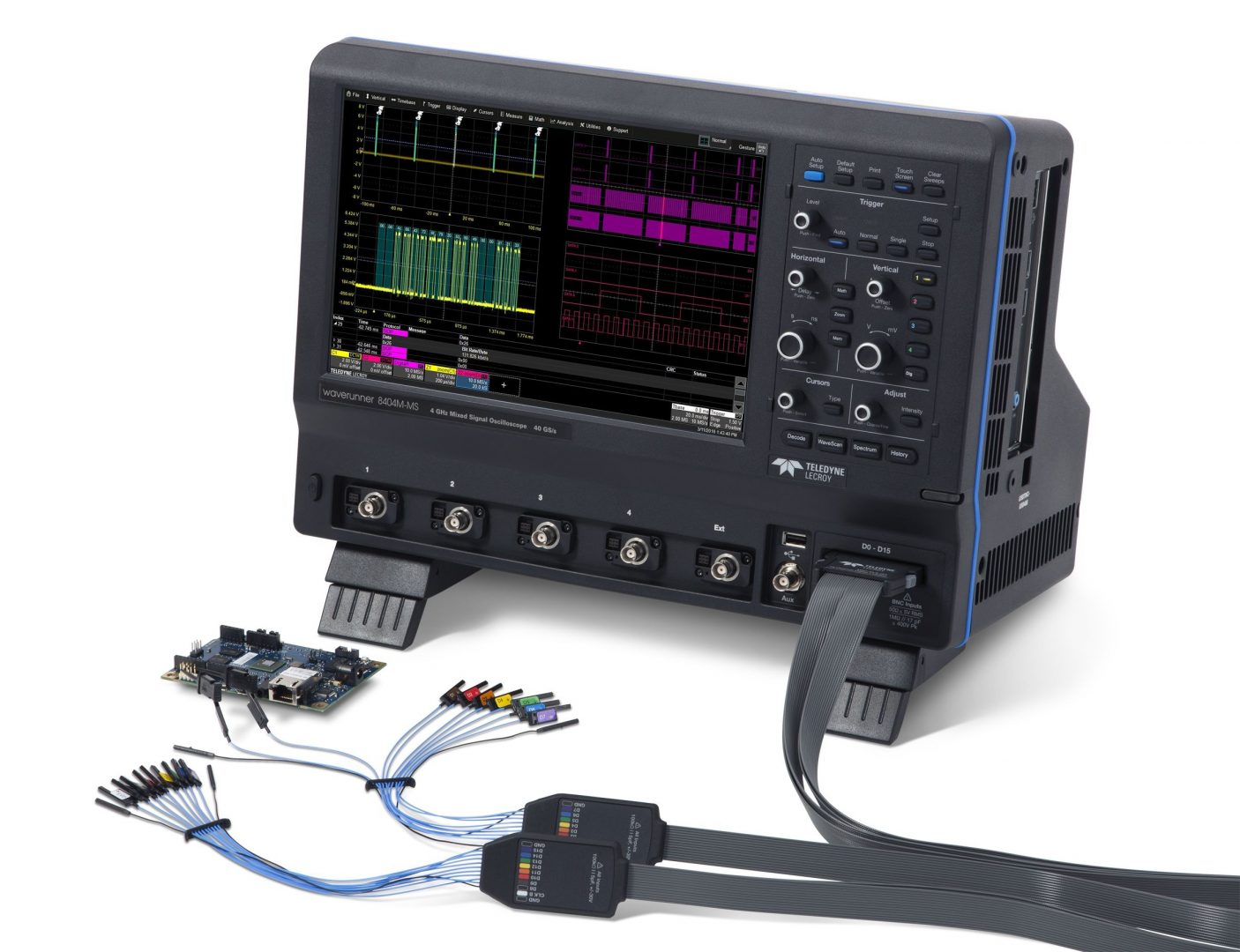 « Nous avons en fait repris le “look” des oscilloscopes HDO 4000 et HDO 6000, qui sont dotés d’un écran TFT couleur tactile 12,1 pouces et de la technologie MAUI (Most Advanced User Interface). Cette dernière bénéficie de plusieurs améliorations, telles que la fonction OneTouch qui rend la configuration des mesures outrageusement facile », affirme Jean Laury, AVP EMEA Oscilloscope Sales chez Teledyne LeCroy. Les utilisateurs peuvent en effet accéder aux opérations les plus communes d’une seule pression sur l’écran, copier et configurer des voies, des fonctions mathématiques et des paramètres de mesures via des actions du type « drag-and-drop ».