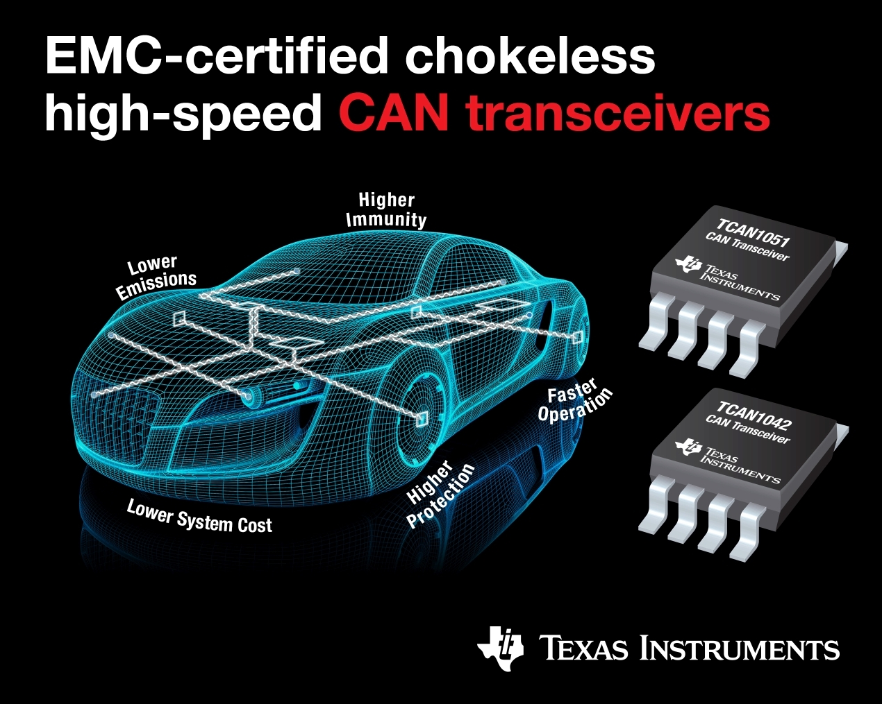 Texas Instruments inaugure deux familles de circuits d’émission-réception pour bus CAN optimisés pour répondre aux spécifications de compatibilité électromagnétique des fabricants automobiles européens et américains. Conformes AEC-Q100, les TCAN1042 et TCAN1051 supportent des tensions de bus allant jusqu’à 70V et des pics électrostatiques jusqu’à +/-15kV. Le débit de données maximal atteint 5Mbit/s. Les TCAN1042 et TCAN1051 sont vendus à partir de 0,48$ pièce par quantités de 1000.